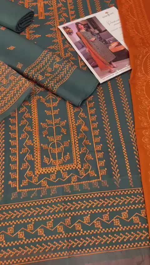 Luxurious Dhanak fabric with intricate embroidery.